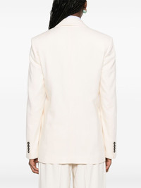 single-breasted blazer Highlights - White - Front button fastening - Shoulder pads - Chest patch pocket - Two front flap pockets Imported Composition Lining: Viscose 100% Outer: Viscose 91%, Polyester 8%, Elastane 1% SIZE & FIT Model measurements Height 5 ft 10 in(1.78 m) Bust/Chest 31.49 in(80 cm) Hips 37 in(94 cm) Waist 23.62 in(60 cm) FittingInformation Designed for a slim fit that sits just away from the body offering a close yet comfortable fit The internal shoulder pads offer a structured shape Made from a midweight stretch fabric, this piece offers elasticity and flexibility when worn