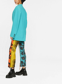 notched lapels single-breasted blazer MSGM's blazer is punctuated by its bright turquoise blue hue that gives it a burst of bold colour. The relaxed silhouette lends a casual feel to the classic single-breasted silhouette and the notched lapels. Made in Italy Composition Outer: Virgin Wool 96%, Elastane 4% Lining: Polyester 100% Washing instructions Dry Clean Only