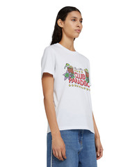 Solid color cotton crewneck t-shirt with "club paradiso" graphic. Short sleeves and ribbed collar. Regular fit. The model (female) is wearing a size S / 40 (Height : 178 cm - Bust : 80 cm - Chest : 59 cm - Hips : 90 cm) CODE: 3441MDM161-237002-01 Details and fit - 100% CO - The model (female) is wearing a size S / 40 (Height : 178 cm - Bust : 80 cm - Chest : 59 cm - Hips : 90 cm) - For information about a product, care and materials, please call us at +39 02 9475 5343 or contact us through Chat. You can also get help by filling out the form in the Help section.