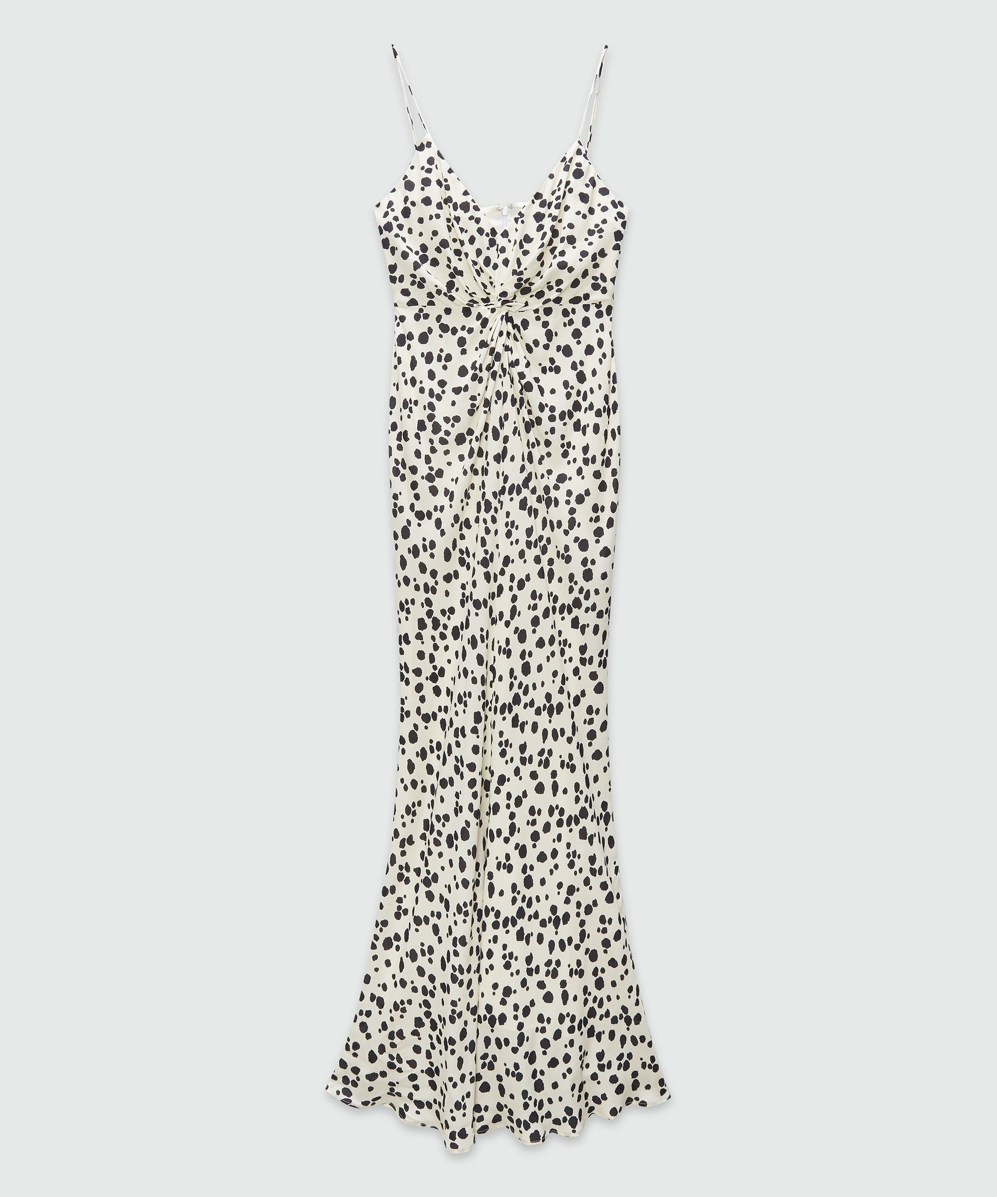 Viscose print slip dress with decorative knot at the waist. Thin shoulder straps, V-neck collar and flared skirt. Slim fit. CODE: 3741MDA42-247663-02 Details and fit - 100% VI - For information about a product, care and materials, please call us at +39 02 9475 5343 or contact us through Chat. You can also get help by filling out the form in the Help section.