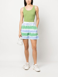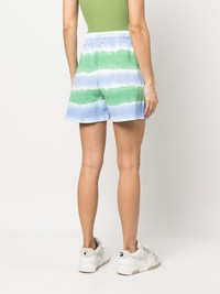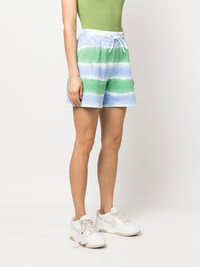 stripe-pattern drawstring shorts light blue/light green embroidered logo to the side tie-dye pattern horizontal stripe pattern elasticated drawstring waistband two side slit pockets thigh-length Made in Italy Composition Cotton 100% SIZE & FIT Model measurements Height 5 ft 11 in(1.8 m) Bust/Chest 33.07 in(84 cm) Hips 37.4 in(95 cm) Waist 25.19 in(64 cm) FittingInformation This piece fits true to size. We recommend you get your regular size Designed to be fitted at the waist and hips, loose over the leg Made with a mid-weight fabric Washing instructions Hand Wash