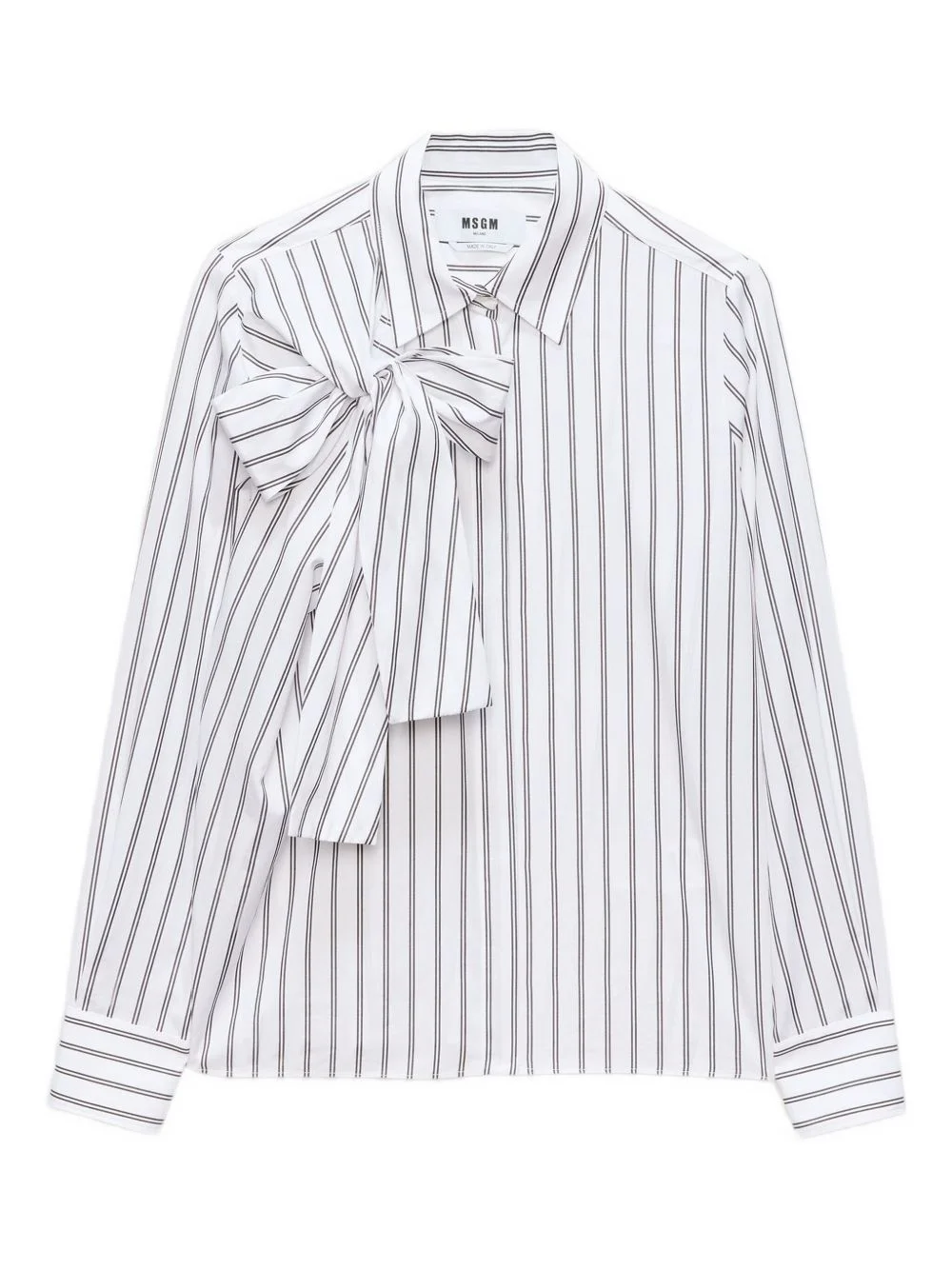 striped bow-detail shirt Highlights - White - Pinstripe pattern - Oversized bow - Point collar - Long sleeves - Front button fastening Made in Italy Composition Fabric 100% Washing instructions Read Manufacturer Guidelines