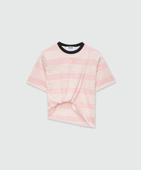 Cotton T-Shirt with pink and white striped pattern characterized by the asymmetric knot on the front hem. Regular fit. The model wears size S/40. CODE: 3841MDM140-257128-11 Details and fit - 100% CO