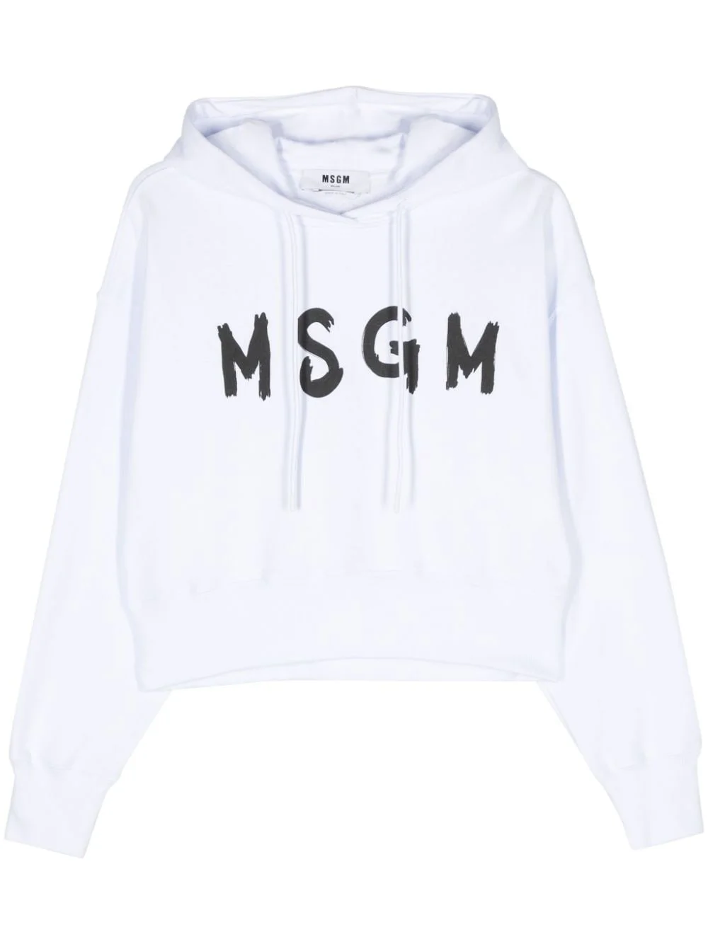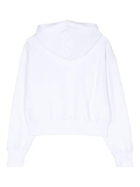 logo-print cotton hoodie Highlights - Optical white - Cotton - Jersey texture - Drawstring hood - Long sleeves - Logo print to the front - Ribbed cuffs and hem Made in Italy Composition Cotton 100% SIZE & FIT FittingInformation Designed for a relaxed fit, this piece allows for comfort and movement when worn Cropped in length Made from a midweight non-stretch fabric, this piece offers minimal elasticity when worn This piece fits true to size – take your usual size