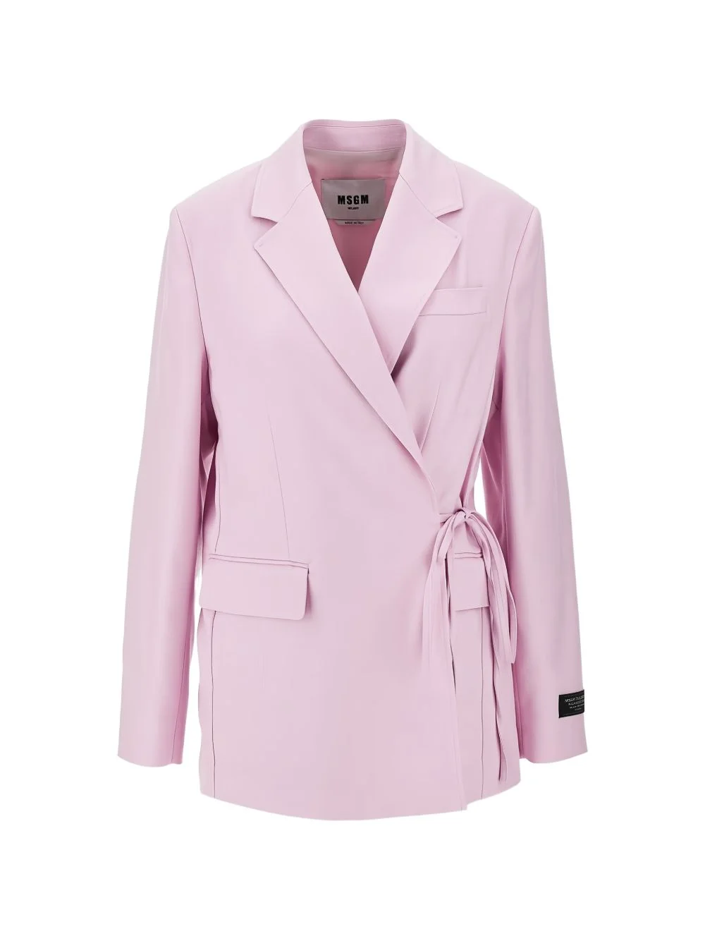 tie-fastening long-sleeve blazer Highlights - Pink - Tie fastening - Notched lapels - Front flap pockets - Long sleeves - Wrap style Made in Italy Composition Viscose 91%, Polyester 8%, Spandex/Elastane 1% Washing instructions Read Manufacturer Guidelines