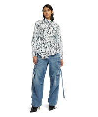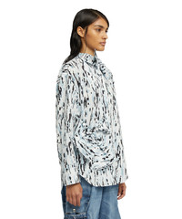 The vertical silhouette is made up of striped poplin shirts paired with maxi skirts or flocked denim cargo pants with an iridescent effect. Fitted top with rounded collar and large shoulder pads. CODE: 3542MDE09X-237857-01 Details and fit - 100% CO - Model wears size S / 40 (Height: 178 cm - Chest: 80 cm - Waist 59 cm - Hips: 90 cm) - For information about a product, care and materials, please call us at +39 02 9475 5343 or contact us through Chat. You can also get help by filling out the form in the Help section.