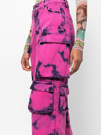 two-tone acid-wash jeans Highlights - Hot pink - Navy blue - Cotton blend - Acid wash - Two-tone detail - Concealed front zip fastening - Belt loops - Two rounded pockets to the sides - Two rear patch pockets - Multiple flap pockers - Logo patch to the rear - Wide leg Made in Italy Composition Outer: Cotton 100% Lining: Polyester 65%, Cotton 35% SIZE & FIT Model measurements Height 5 ft 11 in(1.8 m) Bust/Chest 31.88 in(81 cm) Hips 35.03 in(89 cm) Waist 24.01 in(61 cm) FittingInformation This piece fits true to size. We recommend you get your regular size Designed to be fitted at the waist and hips, loose over the leg Made with a mid-weight non-stretch fabric Washing instructions Hand Wash