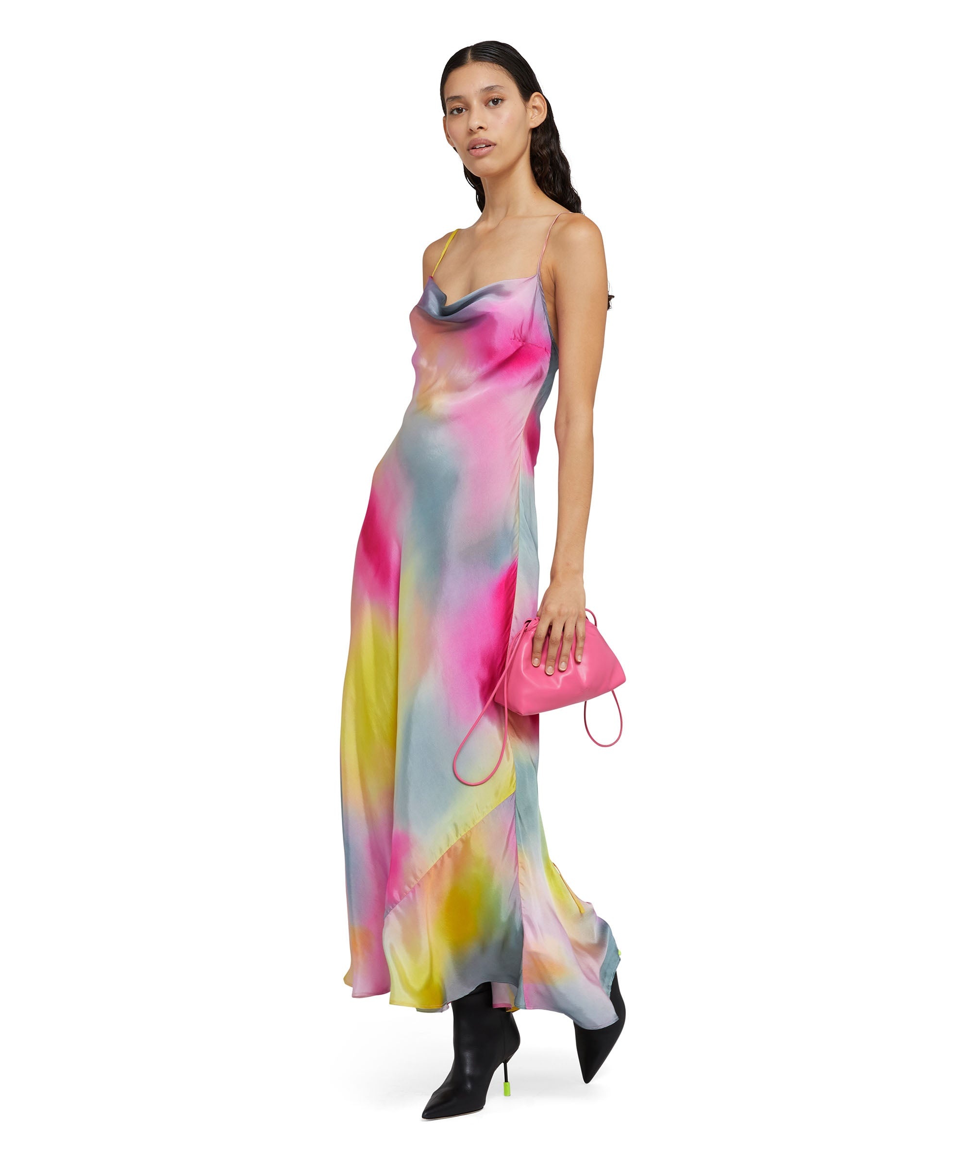Viscose and twill long dress with "Tie Dye" print. Ring neckline with very thin shoulder straps which lead to a wide rear neckline. Curling details on lower back. Lightweight fabric. Snug fit. The model (female) is wearing a size S / 40 (Height : 178 cm - Bust : 80 cm - Chest : 59 cm - Hips : 90 cm) CODE: 3441MDA200-237151-03 Details and fit - 60% VI / 40% CU - The model (female) is wearing a size S / 40 (Height : 178 cm - Bust : 80 cm - Chest : 59 cm - Hips : 90 cm) - For information about a product, care and materials, please call us at +39 02 9475 5343 or contact us through Chat. You can also get help by filling out the form in the Help section.
