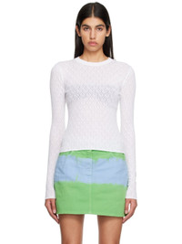 Pointelle knit viscose-blend T-shirt. Rib knit crewneck, hem, and cuffs. Supplier color: White 70% viscose, 30% polyester. Made in Italy 231443F096003