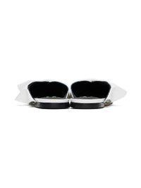 Patent leather mules in white. · Pointed toe · Ruffled trim at vamp · Logo patch at padded leather footbed · Buffed leather lining · Nubuck sole with rubber injection Supplier color: White Upper: leather. Sole: leather, rubber. Made in Italy 241443F121001