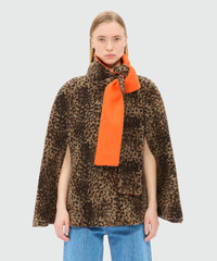 Brushed wool cape featuring a lynx-effect spotted pattern and a contrasting shawl collar. Clean lines with side slits for arm passage, a straight hem, and an MSGM logo detail on the back. Oversized fit. Model wears size S/40. CODE: 3941MDC11Y-257609-29 Details and fit - 52% WO / 28% PL / 10