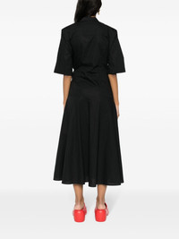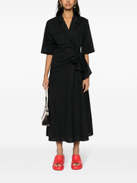 wraparound midi dress Highlights - Black - Cotton - Poplin texture - Notched lapels - V-neck - Shoulder pads - Two button-fastening chest pockets - Short sleeves - Flared skirt - Calf-length - Straight hem - Wraparound style with tied waist Made in Italy Composition Cotton 100% SIZE & FIT Model measurements Height 5 ft 9 in(1.76 m) Bust/Chest 31.88 in(81 cm) Hips 35.43 in(90 cm) Waist 22.44 in(57 cm) FittingInformation Designed for a wraparound style that can be adjusted to your preference The adjustable tie waist gives a more adaptable and personalised fit Made from a midweight non-stretch fabric This piece fits true to size – take your usual size Washing instructions Hand Wash