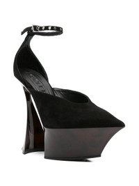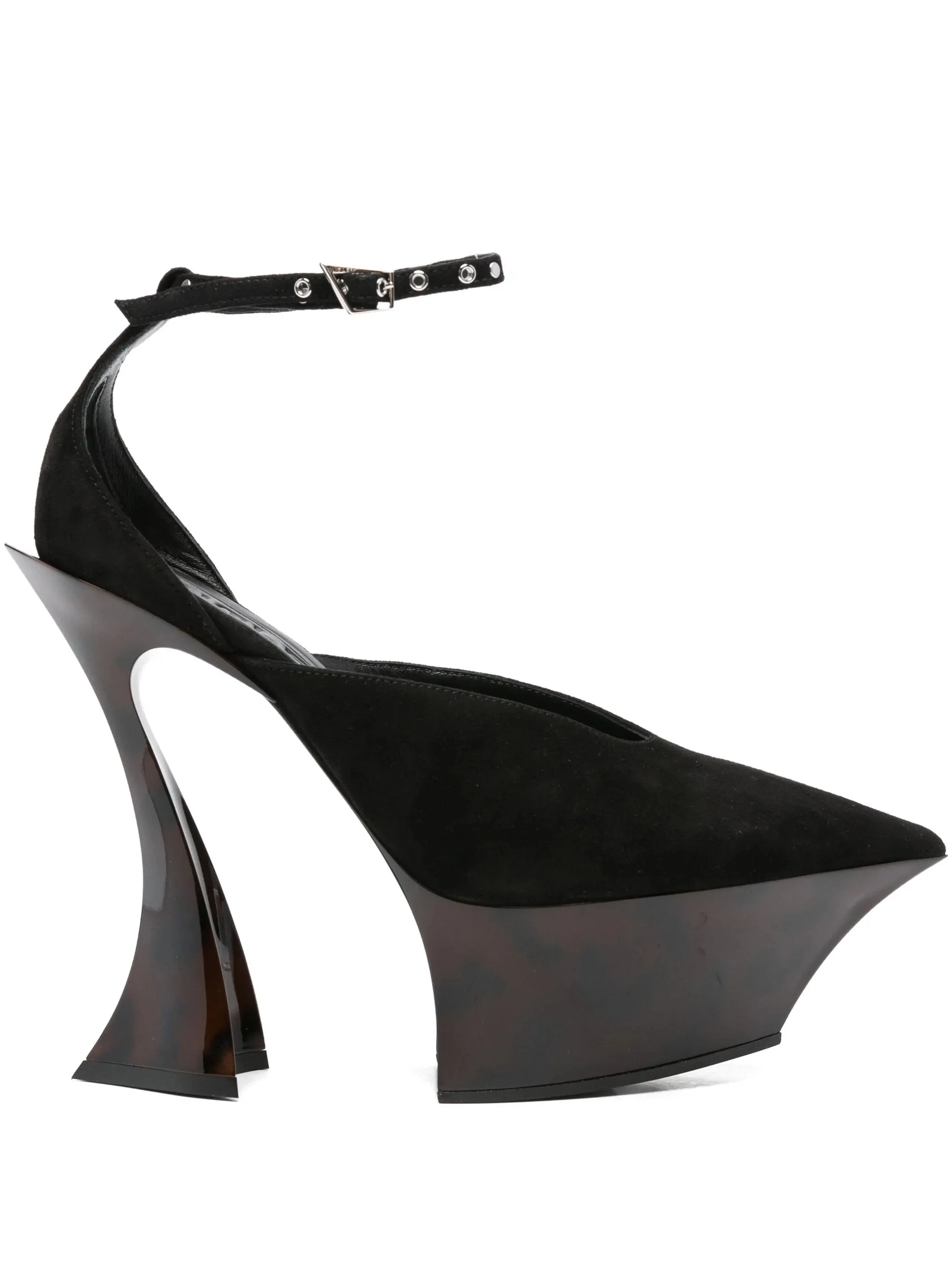 black calf suede sculpted heel pointed toe ankle strap - heel: 14.0 centimetres, platform: 6.0 centimetres - Color: BLACK - Made in: Italy - Designer Style ID: MUWSS25SC168 ANKLE STRA BKTOR Composition and care Lining Composition Calf Leather: 100.0%, Sole Composition Calf Leather: 100.0%, Outer Composition Calf Suede: 100.0%, Sole Composition Rubber: 100.0%