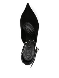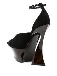 140mm platform pumps Highlights - Black - Calf suede - Sculpted heel - Pointed toe - Ankle strap Made in Italy Composition Outer: Calf Suede 100% Sole: Calf Leather 100%, Rubber 100% Lining: Calf Leather 100% SIZE & FIT Measurement HEEL 5.51 in(14 cm) PLATFORM 2.36 in(6 cm)