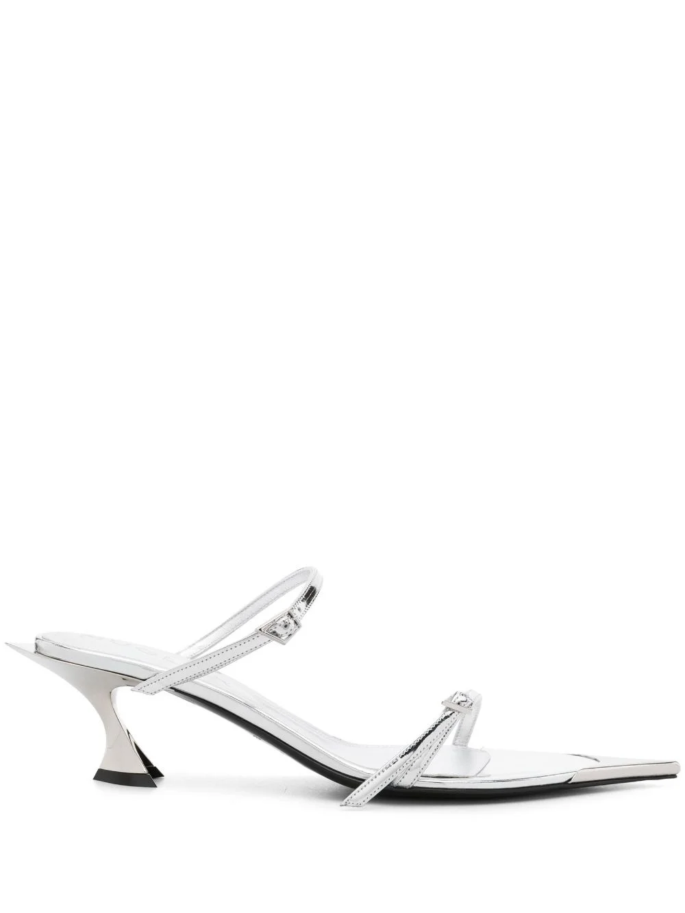 50mm metallic leather sandals Highlights - Silver-tone - Goatskin - Metallic finish - Two buckle-strap fastenings - Open pointed toe - Branded leather insole - 50mm kitten heel - Silver-tone hardware Made in Italy Composition Outer: Calf Leather 100%, Metal 100% Sole: Calf Leather 80%, Thermoplastic Polyurethane (TPU) 20% Lining: Goat Skin 100% SIZE & FIT Measurement HEEL 2.55 in(6.5 cm)