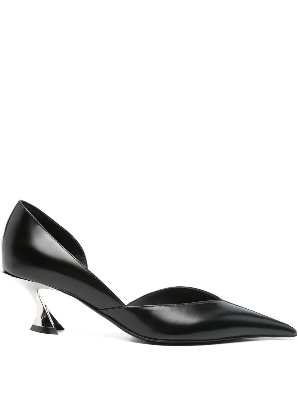 55mm Fang sculpted-heel pumps Highlights - Black - Pointed toe - Open sides - Sculpted metallic heel - Slip-on design Made in Italy Composition Outer: Leather 100% Lining: Leather 100% Sole: Leather 100% SIZE & FIT Measurement HEEL 2.16 in(5.5 cm)
