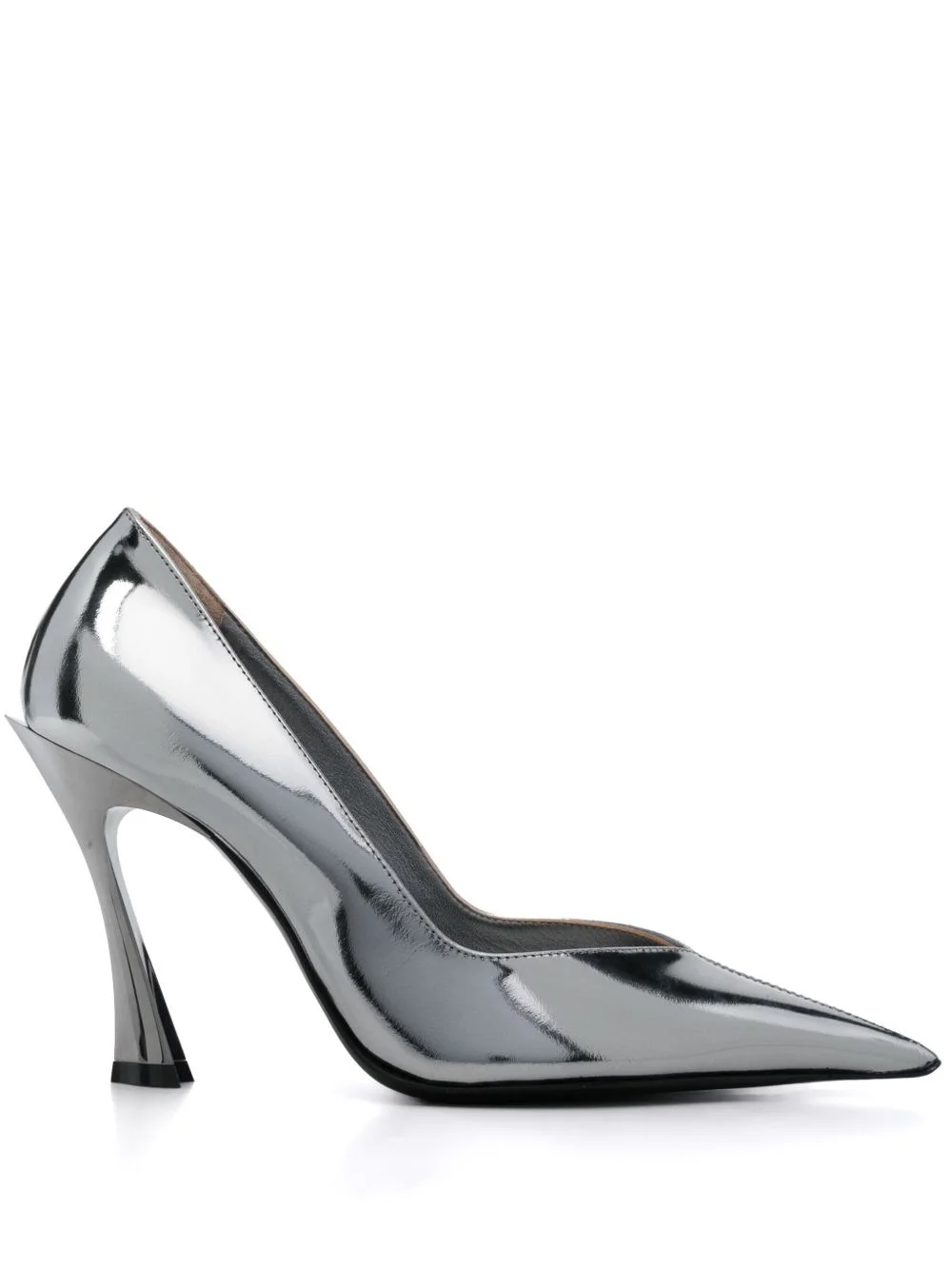 95mm Classic Fang pumps Highlights - Silver-tone - Calf leather - Patent finish - Metallic effect - Slip-on style - 95mm - High stiletto fang heel - Pointed toe - Leather sole - Rubber outsole Made in Italy Composition Sole: Rubber 100%, Calf Leather 100% Lining: Calf Leather 100% Outer: Patent Calf Leather 100% SIZE & FIT Measurement CIRCUMFERENCE 3.74 in(9.5 cm) Sole height 0.39 in(1 cm)