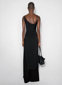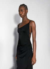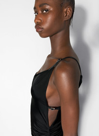 - Maxi dress - Fitted silhouette - Asymmetrical neckline and open back - Buckled straps - Draped detailing - Thigh-high slit DETAILS 95% VISCOSE 5% ELASTANE Made in Portugal Style: 25P3RO16986005