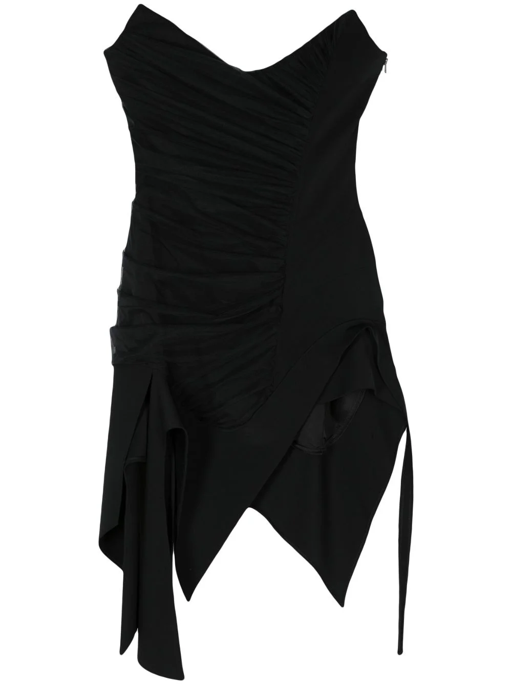 asymmetric bustier mini dress Highlights - Black - Mesh panelling - Boned bodice - Sweetheart neck - Side zip fastening - Strapless - Ruched detailing - Asymmetric hem - Strap detailing - Thigh-length - Full lining Imported Composition Outer: Viscose 96%, Polyamide 77%, Elastodiene 23%, Spandex/Elastane 4% Lining: Viscose 57%, Polyester 43% SIZE & FIT FittingInformation Designed for a very close and sculpting fit Slightly short in length; consider your own measurements Made from a midweight stretch fabric, this piece offers elasticity and flexibility when worn This piece fits true to size – those with curvy hips may wish to take one size up