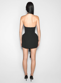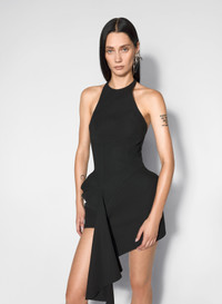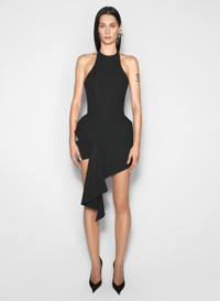 black asymmetrical tailored halter dress