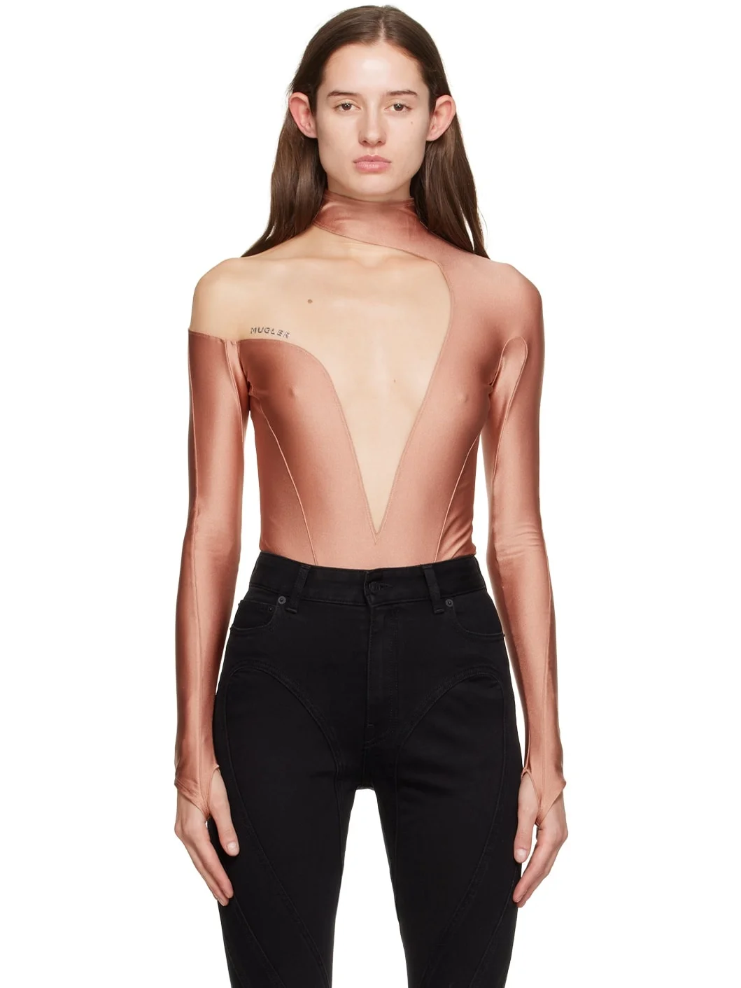 Semi-sheer stretch nylon jersey and stretch nylon mesh bodysuit. · Paneled construction · Mock neck · Rubberized logo applique at front · Press-stud fastening at bottom · Zip closure at back · Partial cotton jersey lining Supplier color: Light blush/Beige Body: 80% polyamide, 20% elastane. Body 2: 77% polyamide, 23% elastane. Lining: 100% cotton. Made in Portugal 241345F358032