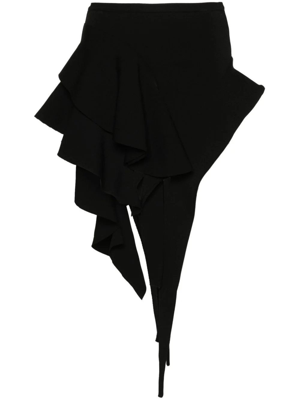 asymmetric knitted mini skirt Highlights - Black - Stretch-design - Knitted construction - Asymmetric design - Elasticated waistband - Ruffled detailing - Strap detailing - Thigh-length Made in Italy Composition Viscose 71%, PBT Elite 15%, Polyamide 12%, Elastane 2% SIZE & FIT Model measurements Height 5 ft 9 in(1.75 m) Bust/Chest 34.64 in(88 cm) Hips 36.61 in(93 cm) Waist 26.37 in(67 cm) FittingInformation Designed with an asymmetric hem, this skirt is intended to be worn low on the hips Made with a midweight knit, this piece offers some stretch This piece fits true to size – take your usual size