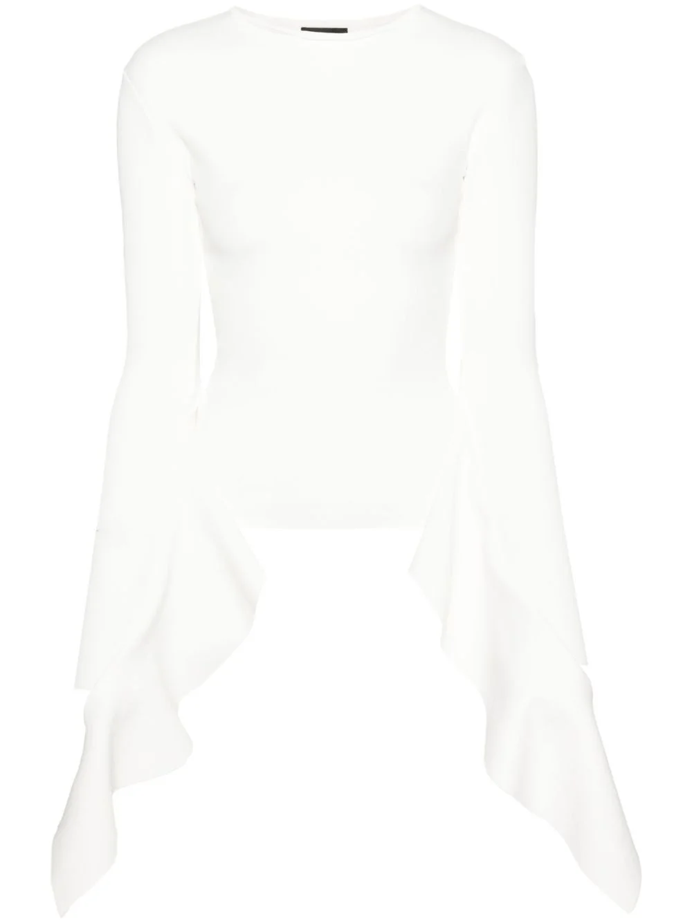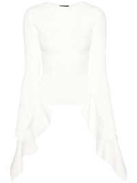 asymmetric knitted top Highlights - White - Stretch-design - Knitted construction - Boat neck - Asymmetric oversize sleeves - Straight hem Made in Italy Composition Viscose 71%, PBT Elite 15%, Polyamide 12%, Elastane 2% SIZE & FIT Model measurements Height 5 ft 11 in(1.8 m) Bust/Chest 33.07 in(84 cm) Hips 37.4 in(95 cm) Waist 25.19 in(64 cm) FittingInformation Designed for a close fit throughout Made with a midweight knit, this piece offers some stretch This piece fits small – take one size up