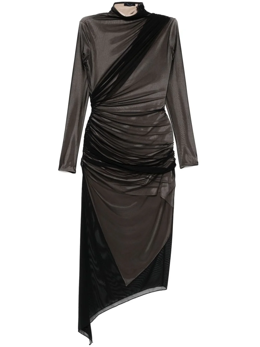 asymetrical double-layered dress Highlights - Black - Side zip fastening - Ruched detailing - Draped detailing - High neck Imported Composition Other fibres 100% SIZE & FIT Model measurements Height 5 ft 10 in(1.78 m) Bust/Chest 33.46 in(85 cm) Hips 36.22 in(92 cm) Waist 23.22 in(59 cm) Measurement SLEEVE LENGTH 25 in(63.5 cm) HIPS 32.28 in(82 cm) LENGTH 48.42 in(123 cm) WAIST 22.04 in(56 cm) FittingInformation Designed for a close fit throughout Made from a midweight stretch fabric, this piece offers elasticity and flexibility when worn