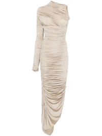asymmetrical maxi dress Highlights - Taupe - Concealed side zip fastening - Single long sleeve Imported Composition Recycled Polyamide 82%, Elastane 18% SIZE & FIT Model measurements Height 5 ft 10 in(1.78 m) Bust/Chest 33.46 in(85 cm) Hips 36.22 in(92 cm) Waist 23.22 in(59 cm) Measurement SLEEVE LENGTH 27.55 in(70 cm) HIPS 25.98 in(66 cm) LENGTH 59.05 in(150 cm) WAIST 17.32 in(44 cm) FittingInformation Designed for a close fit throughout This piece fits small – take one size up