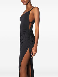 asymmetrical side-split midi dress Highlights - Black - Asymmetrical neckline - Side split - Adjustable straps Imported Composition Viscose 95%, Elastane 5% Washing instructions Read Manufacturer Guidelines