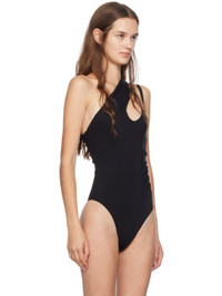 Stretch viscose crepe jersey bodysuit. · Asymmetrical construction · Cutouts at shoulder · Press-stud fastening at bottom · Ruching and concealed zip closure at side seam · Partial stretch cotton jersey lining Supplier color: Black Body: 96% viscose, 4% elastane. Lining: 95% cotton, 5% elastane. Made in Portugal 242345F358000