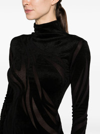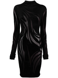 sheer chenille minidress Mugler's minidress speaks to the brand's penchant for form-fitting silhouettes. Made in Italy with a flocked chenille texture, it's punctuated with carefully placed sheer panels for a daring flash of skin. Highlights - Black - Chenille texture - Sheer panelling - Mock neck - Long sleeves - Straight hem Imported Composition Viscose 63%, Polyamide 37% SIZE & FIT Model measurements Height 5 ft 9 in(1.76 m) Bust/Chest 33.07 in(84 cm) Hips 34.64 in(88 cm) Waist 25.59 in(65 cm) Measurement SLEEVE LENGTH 22.44 in(57 cm) HIPS 27.55 in(70 cm) LENGTH 39.37 in(100 cm) WAIST 22.04 in(56 cm) BUST 26.77 in(68 cm) Shoulder Width 14.17 in(36 cm) FittingInformation Designed for a close fit throughout Made from a midweight non-stretch fabric, this piece offers minimal elasticity when worn This piece fits true to size – take your usual size Washing instructions Hand Wash