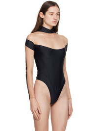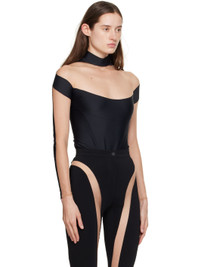 Stretch nylon jersey and tulle bodysuit. · Paneled construction · Mock neck · Silver-tone logo plaque at front · Press-stud fastening at bottom · Zip closure at back · Partial cotton jersey lining Supplier color: Black Body 1: 78% polyamide, 22% elastane. Body 2: 77% polyamide, 23% elastane. Lining: 100% cotton. Made in Portugal 241345F358026