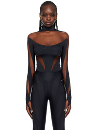 Stretch nylon jersey and sheer stretch nylon mesh bodysuit. · Mock neck · Rubberized logo applique at front · Press-stud fastening at bottom · Thumbhole at cuffs · Concealed zip closure at back · Partial cotton jersey lining Supplier color: Black Body 1: 78% polyamide, 22% elastane. Body 2: 77% polyamide, 23% elastodiene. Lining: 100% cotton. Made in Portugal 241345F358028