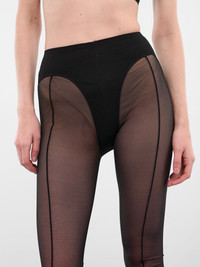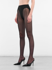 Featuring: • Slim fit and skinny leg • Sheer mesh construction • High-waisted • Opaque panty-line • Vertical seams in the front and back • Made in Bulgaria • Main Fabric: 78% Polyamide 22% Elastane | Second Fabric: 83% Polyamide 17% Elastane • Standard sizing Model is 5'9" wearing size S. Bust: 32" Waist: 25" Hips: 34"