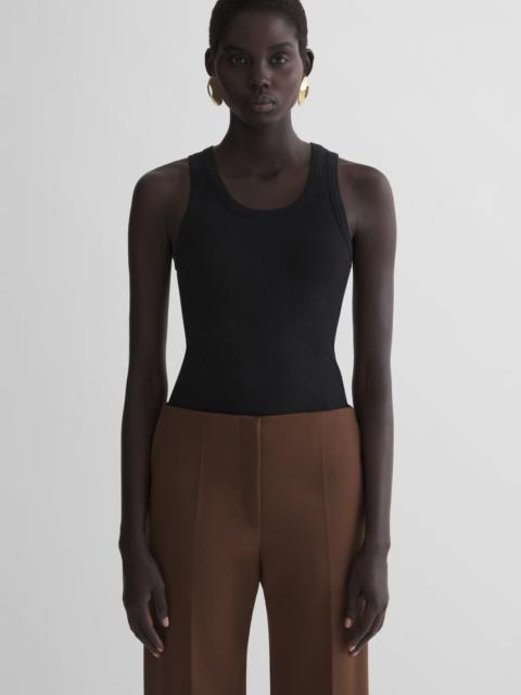 - Tank top in transparent ribbed jersey - Scoop neck - Signature loop on the back - Topstitched centre back - Model is 181 cm / 5'11" and is wearing a size 36 DETAILS LINING:100% CUPRO MAIN FABRIC:100% CALFSKIN made in PORTUGAL style: 26P3TO08515014