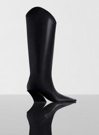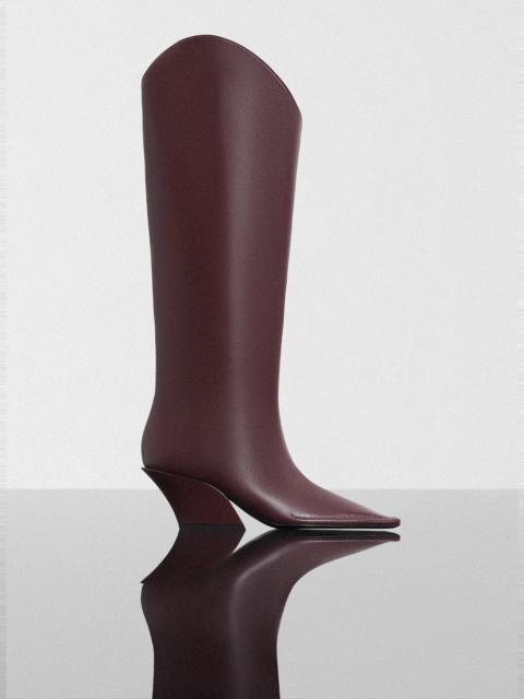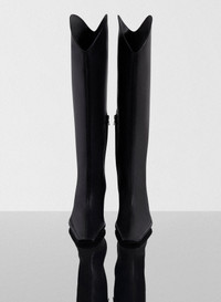 - Italian craftmanship - Knee-high boots in italian leather - Pointed square toe - Leather lining and outsole - Logo embossed on the insole - 65mm slanted cowboy heel DETAILS UPPER : 100% Calfskin, Bos Taurus, Holland, Farmed LINING: 100% GoatSkin, Capra Hircus, India, Farmed SOLE: 80% Calfskin, Bos Taurus, Italy, Farmed, 20% TPU made in Italy style: 25F10CH00499012