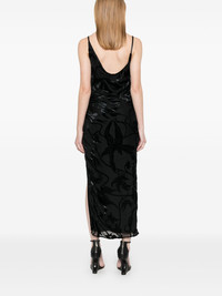 flocked midi dress Highlights - Black - Side buckle fastening - Adjustable shoulder straps - Side slit - Ruched detailing Imported Composition Outer: Viscose 72%, Silk 28% Lining: Viscose 95%, Spandex/Elastane 5% SIZE & FIT Model measurements Height 5 ft 9 in(1.75 m) Bust/Chest 31.88 in(81 cm) Hips 34.64 in(88 cm) Waist 24.01 in(61 cm) FittingInformation Designed for a slim fit that sits just away from the body offering a close yet comfortable fit The adjustable shoulder straps allow for a preferred fit when worn Made from a midweight fabric