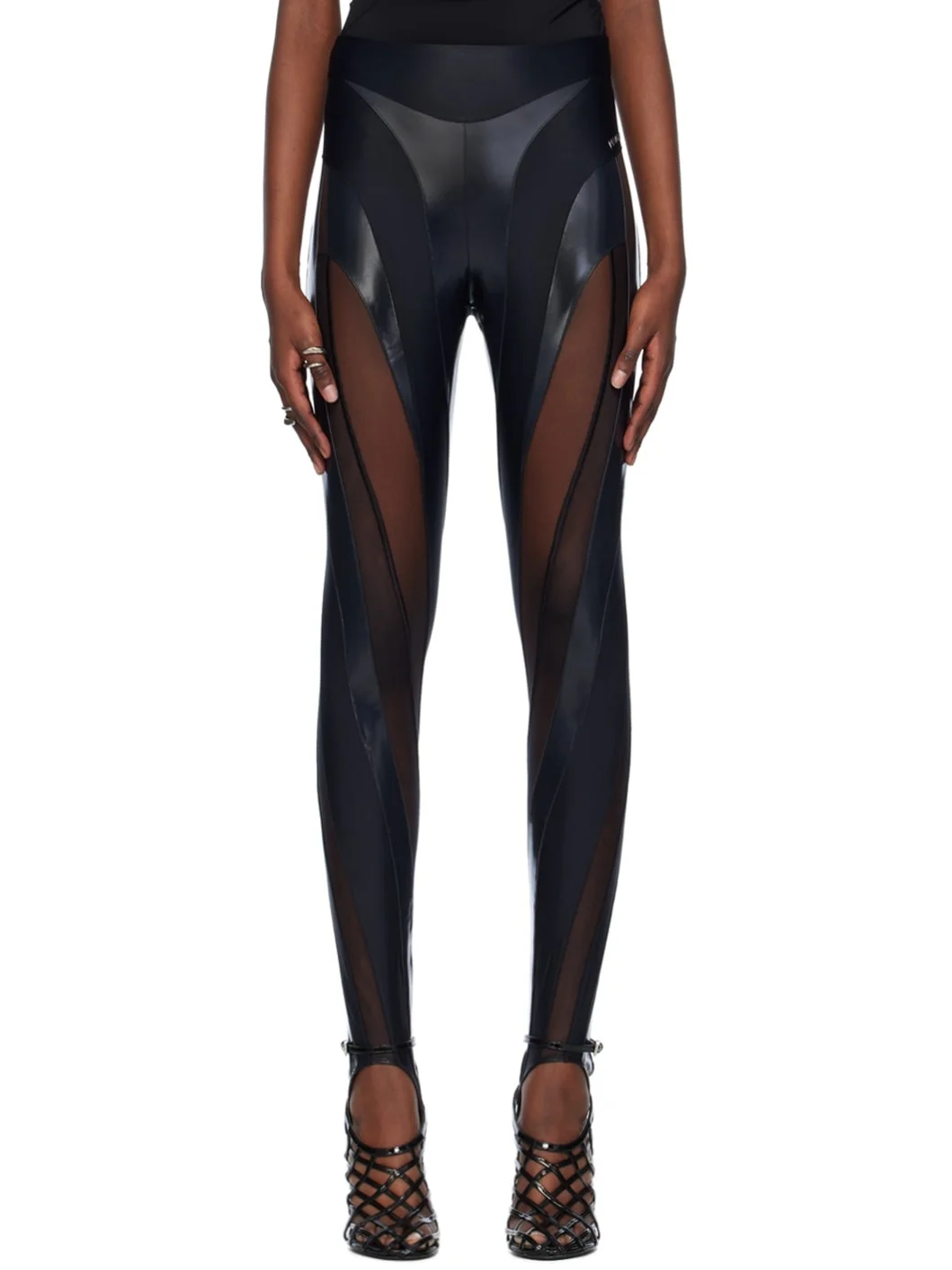 Stretch nylon jersey, latex, and sheer stretch nylon mesh leggings. · Paneled construction · Elasticized waistband · Rubberized logo appliqué at front · Stirrup at cuffs Supplier color: Black/Black