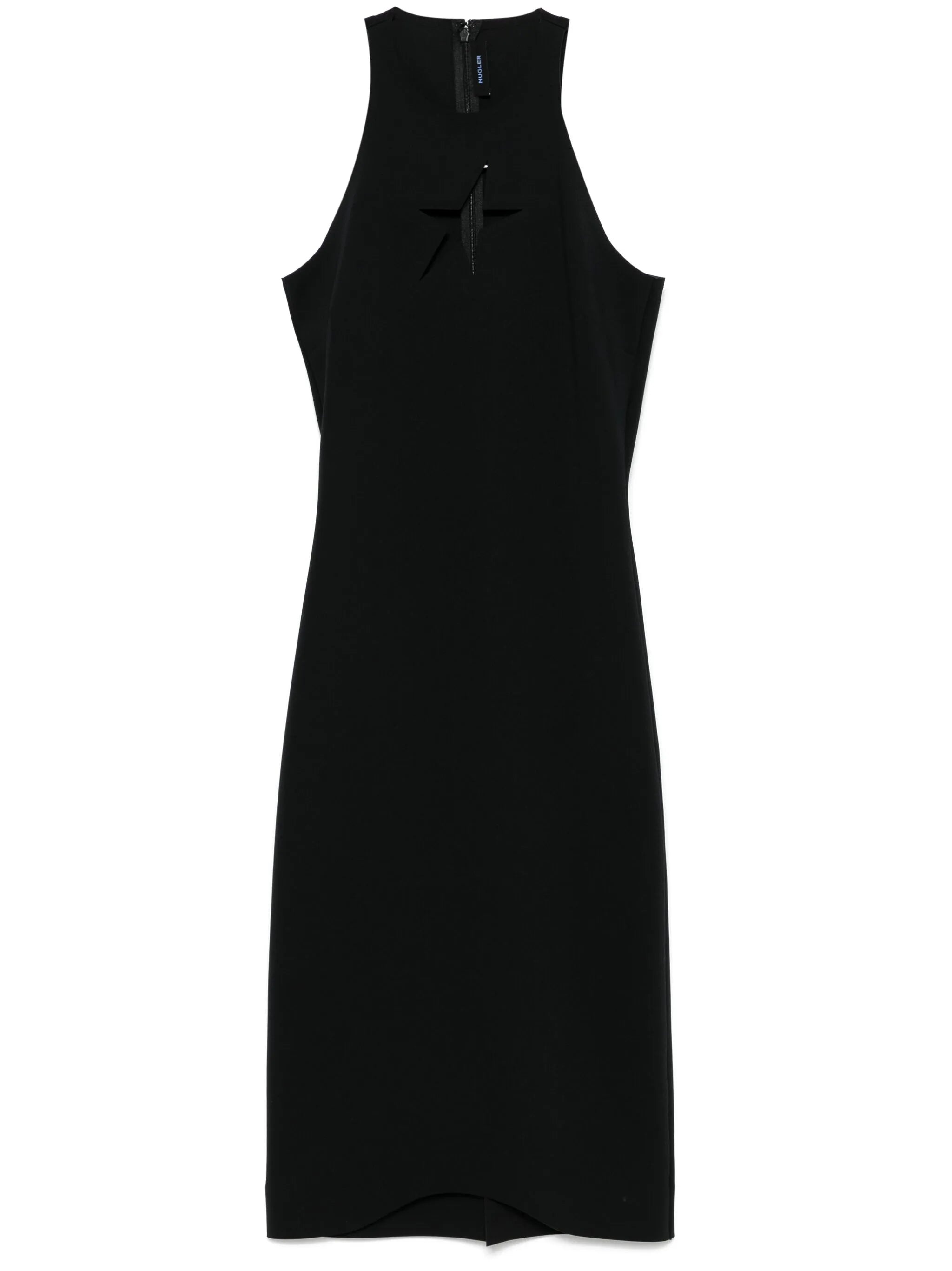 black concealed rear zip fastening crew neck rear slit - Color: BLACK - Made in: Portugal - Designer Style ID: RO1700 1999 Composition and care Spandex/elastane: 25.0%, Recycled Polyamide : 75.0%