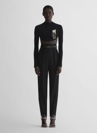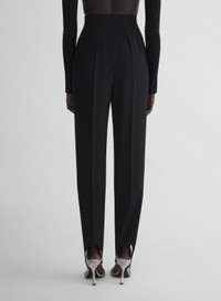 - Tapered tailored pants in Japanese heavy wool - Satin side Tuxedo stripes - Pleated high waist - Hidden hook and zip closure - Side-seam pockets - Elasticated stirrups - Fully lined - Model is 177 cm / 5'10" and is wearing a size 36 DETAILS LINING:100% CUPRO MAIN FABRIC:55% VIRGIN WOOL 23% POLYESTER 22% POLYCHOROPRENE made in UKRAINE style: 26P1PA05381020