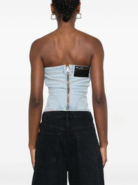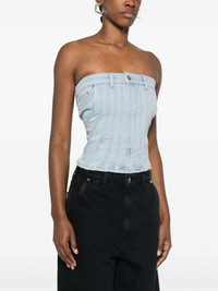 denim stitch-detailed top Highlights - Blue - Rear zip fastening - Logo patch to the rear - Strapless Made in Italy Composition Cotton 98%, Elastane 2% SIZE & FIT Model measurements Height 5 ft 10 in(1.77 m) Bust/Chest 29.92 in(76 cm) Hips 34.25 in(87 cm) Waist 23.62 in(60 cm) FittingInformation Designed for a close fit throughout Constructed from stretch denim, this piece offers a stretch fit with durability