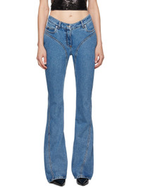 Flared stretch denim jeans. Fading throughout. · Paneled construction · Mid-rise · Belt loops · Five-pocket styling · Zip-fly · Logo patch at back waistband · Logo-engraved silver-tone hardware · Contrast stitching in tan Supplier color: Tokyo dark blue Body: 72% cotton, 28% elastomultiester. Lining: 65% polyester, 35% cotton. Made in Italy 242345F069015