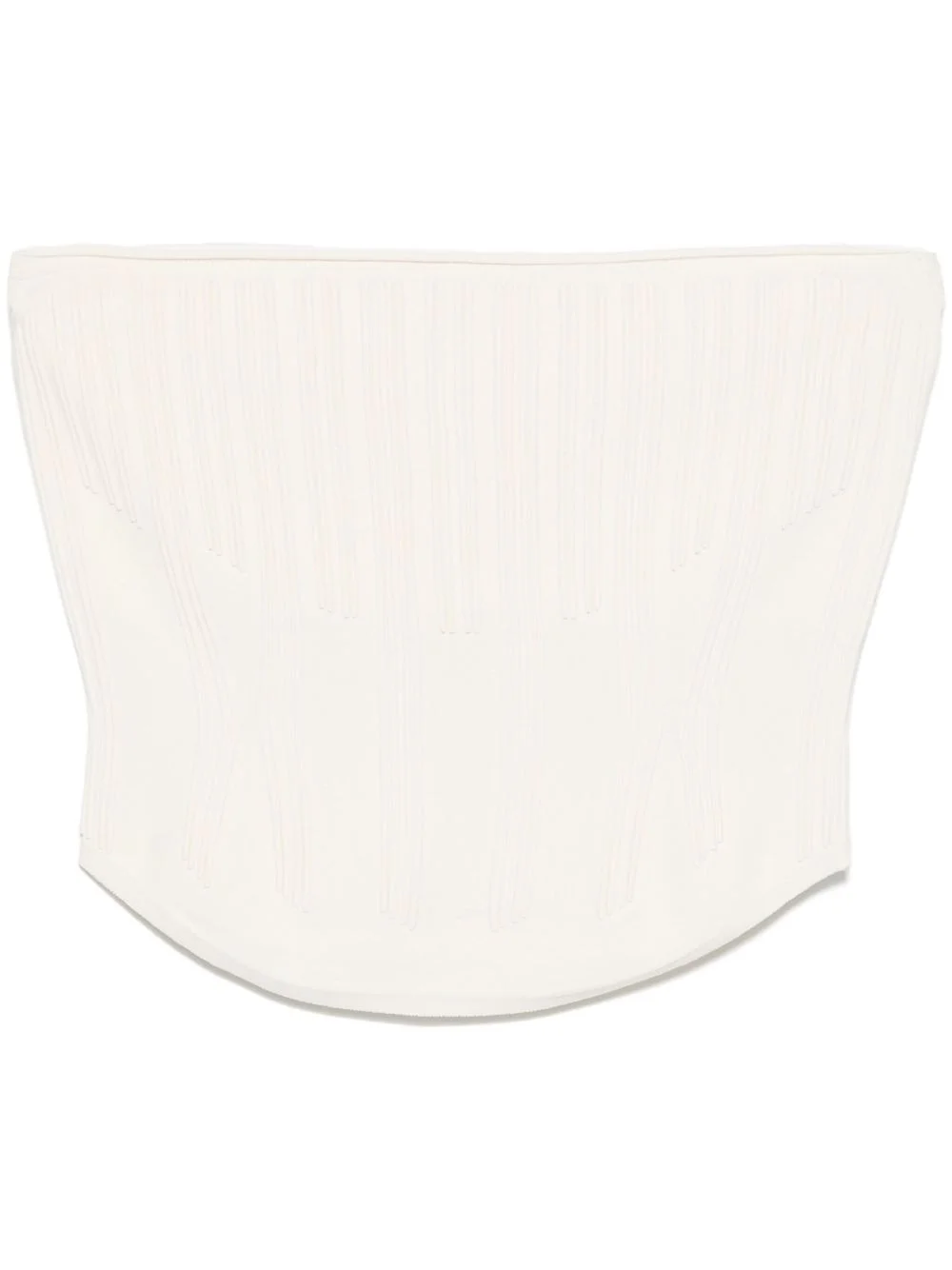 boning-detail top Highlights - White - Raised seam detail - Rolled trim - Bustier-style neckline Imported Composition Viscose 83%, Polyester 17% SIZE & FIT Model measurements Height 5 ft 11 in(1.8 m) Bust/Chest 32.67 in(83 cm) Hips 36.22 in(92 cm) Waist 24.4 in(62 cm) FittingInformation Designed for a close fit throughout Made with a midweight knit, this piece offers some stretch