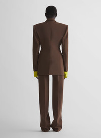 - Oversized hourglass blazer in bonded melange wool - Notched lapel - Wide padded shoulders - Welt pocket with loop signature and flap pockets - Horn buttons - Back vent - Fully lined with pinstriped sleeve interior - Model is 177 cm / 5'10" and is wearing a size 36 DETAILS SECOND LINING:100% CUPRO DOUBLURE 3:100% CUPRO MAIN FABRIC:55% POLYESTER 43% WOOL 2% ELASTANE made in UKRAINE style: 26P1VE04841018