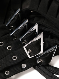buckled corset Highlights - Black - Eyelet detailing - Cut-out detailing - Logo-engraved silver-tone hardware - Buckle-strap fastening - Rear tie fastening - Adjustable shoulder strap - Boned bodice - Full lining Imported Composition Lining: Cupro 100% Outer: Viscose 76%, Virgin Wool 24%