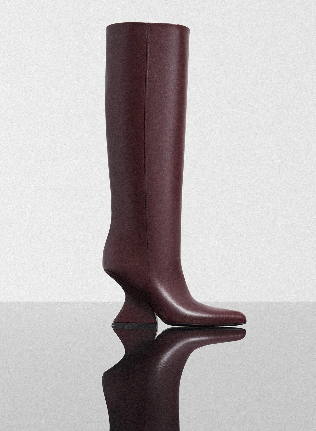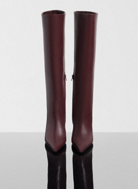 - Italian craftmanship - Knee-high boots in calf leather - Pointed toe - Leather lining and outsole - Logo embossed on the insole - 90mm curved heel DETAILS UPPER : 100% Calfskin, Bos Taurus, Holland, Farmed LINING: 100% GoatSkin, Capra Hircus, India, Farmed SOLE: 80% Calfskin, Bos Taurus, Italy, Farmed, 20% TPU made in Italy style: 25F10CH00549012