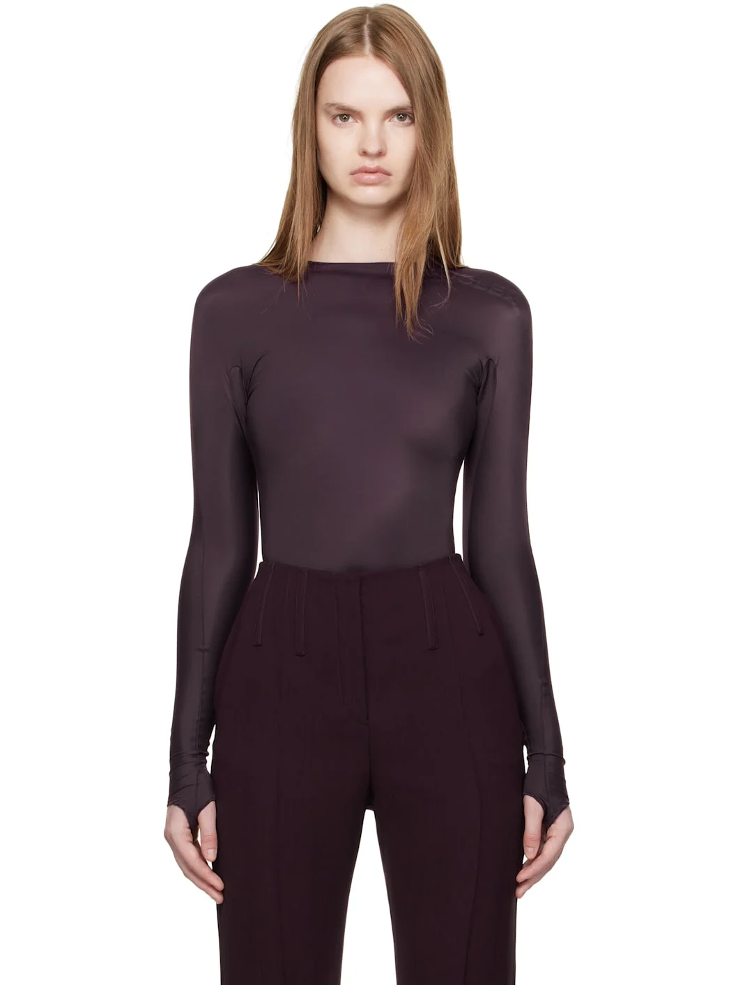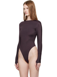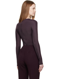 Stretch recycled jersey bodysuit. · Crewneck · Press-stud fastening at bottom · Logo embossed at shoulder · Thumbhole at cuffs · Concealed zip closure at back · Partial stretch cotton jersey lining Supplier color: Burgundy Body: 78% recycled polyamide, 22% elastane. Lining: 95% cotton, 5% elastane. Made in Portugal 252345F358015
