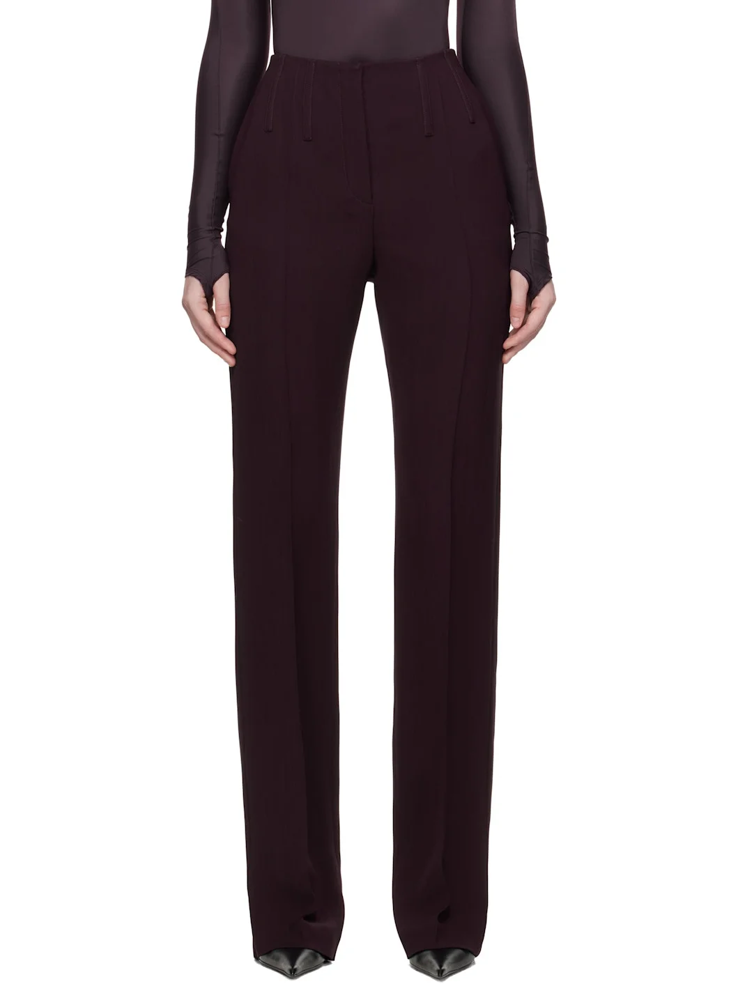 Plain-woven wool-blend trousers. · Straight-leg · Two-pocket styling · Zip fly · Boning at waist · Creased legs Supplier color: Burgundy Body: 78% viscose, 22% virgin wool. Pocket lining: 100% cupro. Made in Bulgaria 252345F087001