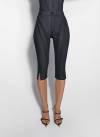 - high-waisted capri jeans - fitted cut - knee length DETAILS FABRIC 1 : 98% COTTON / 2% ELASTANE FABRIC 2 : 83% POLYAMIDE / 17% ELASTANE MADE IN ITALY STYLE: 25P6PA04952013